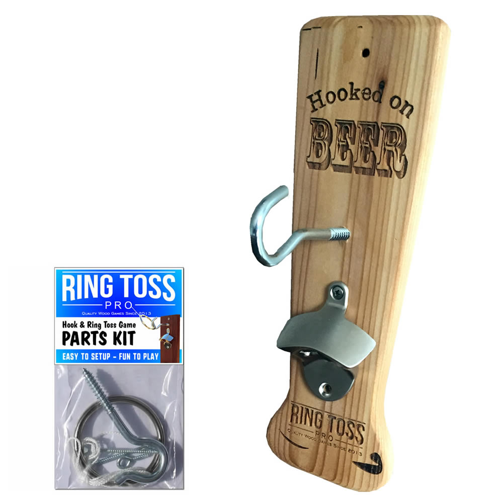 Made right in the USA, each hand crafted Ring Toss Game Board is hand crafted from weather resistant woods, laser etched, and then UV clear coated for extra durability. No two boards are the same. All parts are exterior grade, making Ring Toss Pro's Hook & Ring Toss Games perfect for the outdoors or indoors. These Hook & Ring Toss Games make a great addition to any home or beach bar.