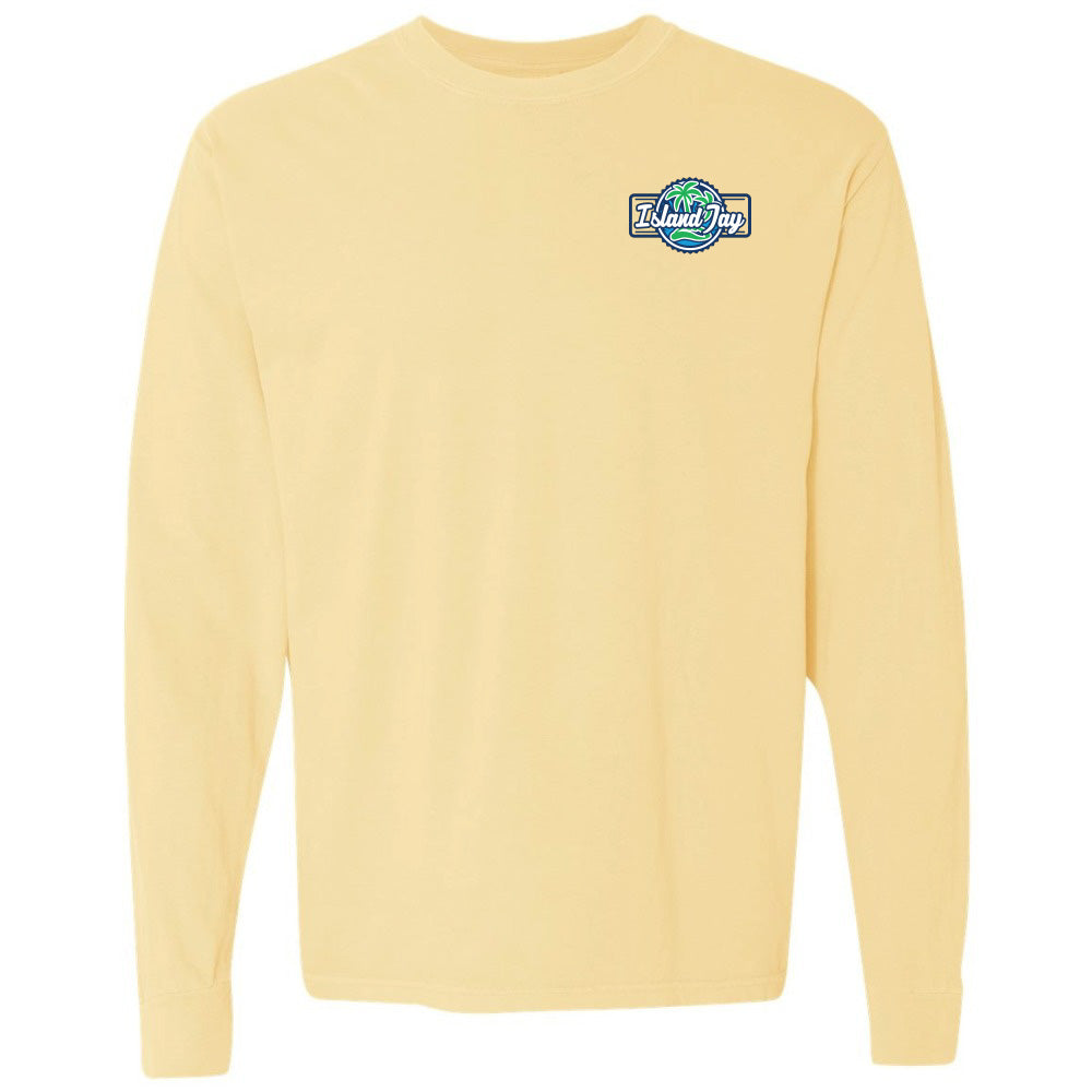 White long-sleeve shirt with the Island Jay logo on the chest.
