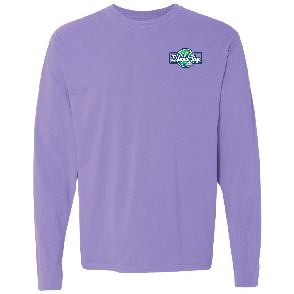 Blue long-sleeve shirt with the Island Jay logo on the chest.