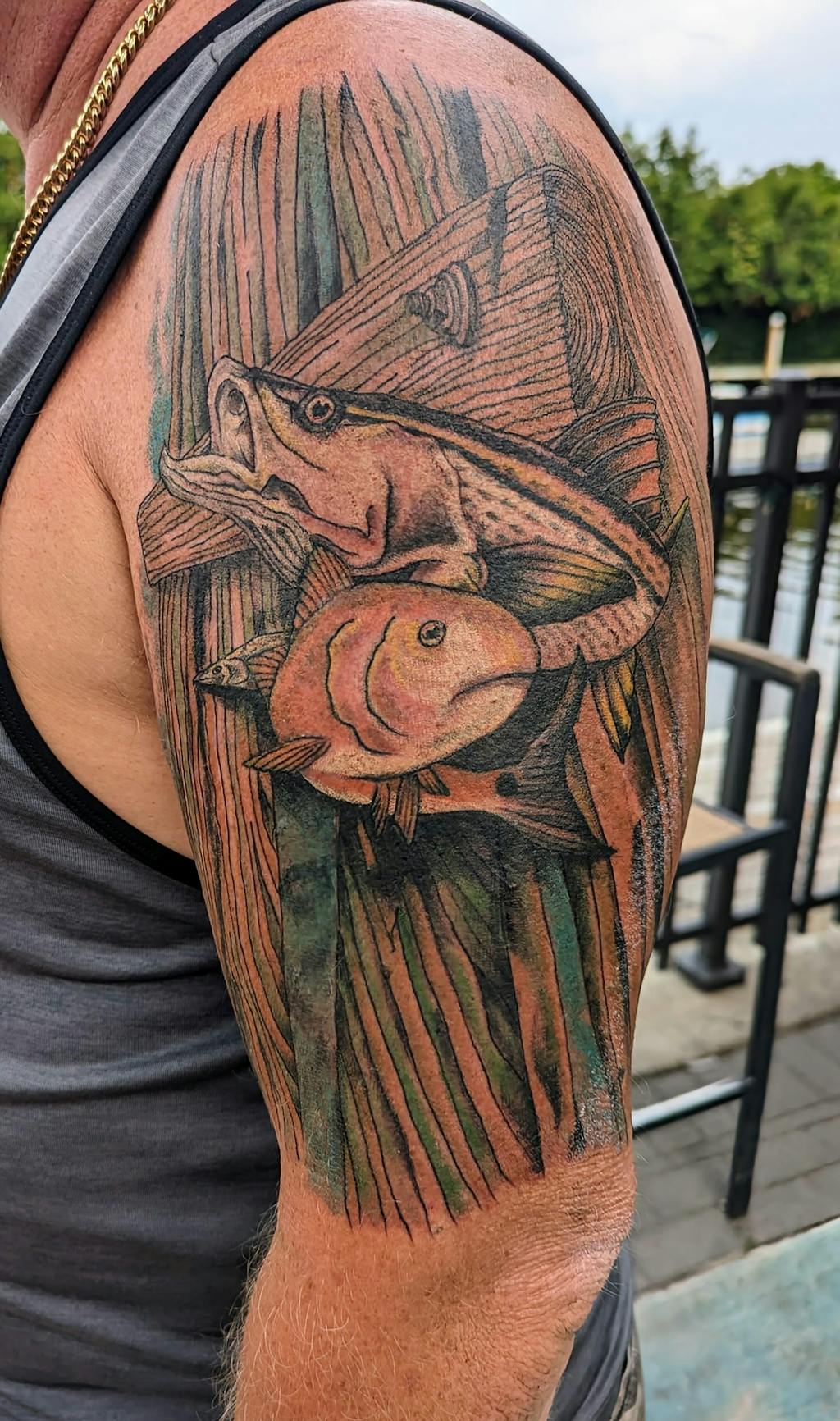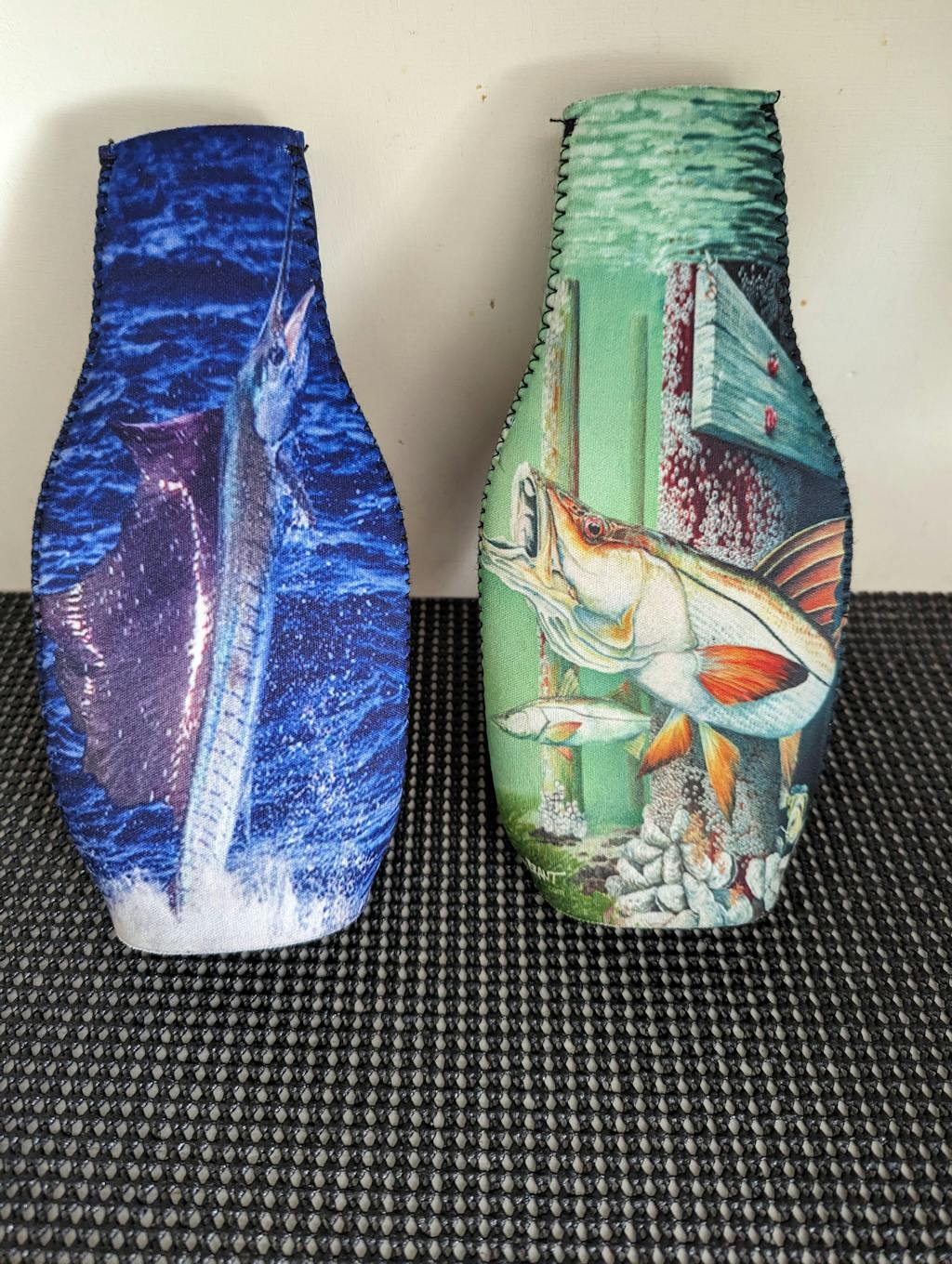 The 2 mystery beer cooler sleeves that we received are so fitting for a couple that fishes! Also the one that my husband claimed matches the new tattoo he just got!