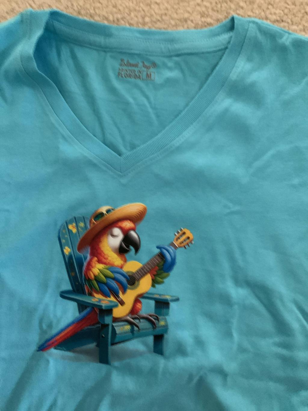 Super cute tee …colors vibrant and looks just as bright and colorful as on the computer screen… fit is perfect and try to size… nice quality material tee… company is in touch with you regarding your order with a little bit of island humor as well. I have bought a few of these tees and love them all … adorable colorful and fun😎